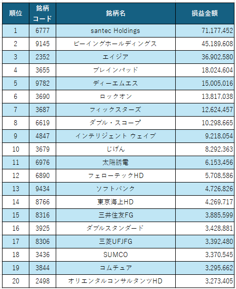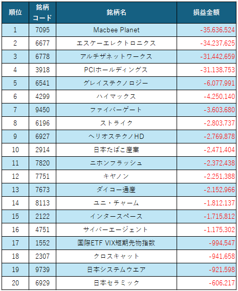 続いて、損失が大きかった銘柄のワースト20です。失敗の要因や教訓も含めて振り返ります。