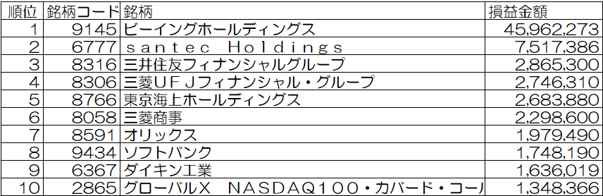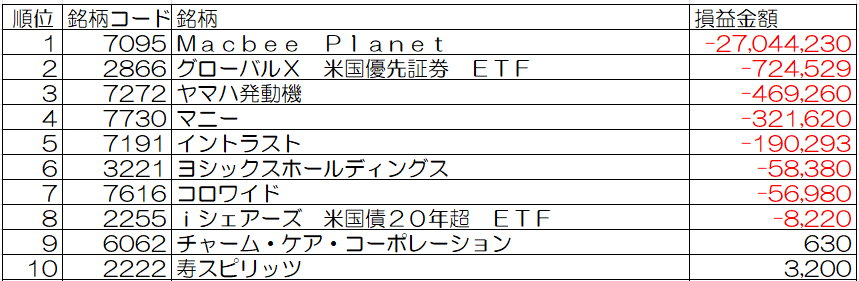 まずは今年の銘柄別の損益額ベスト10とワースト10を公開します。