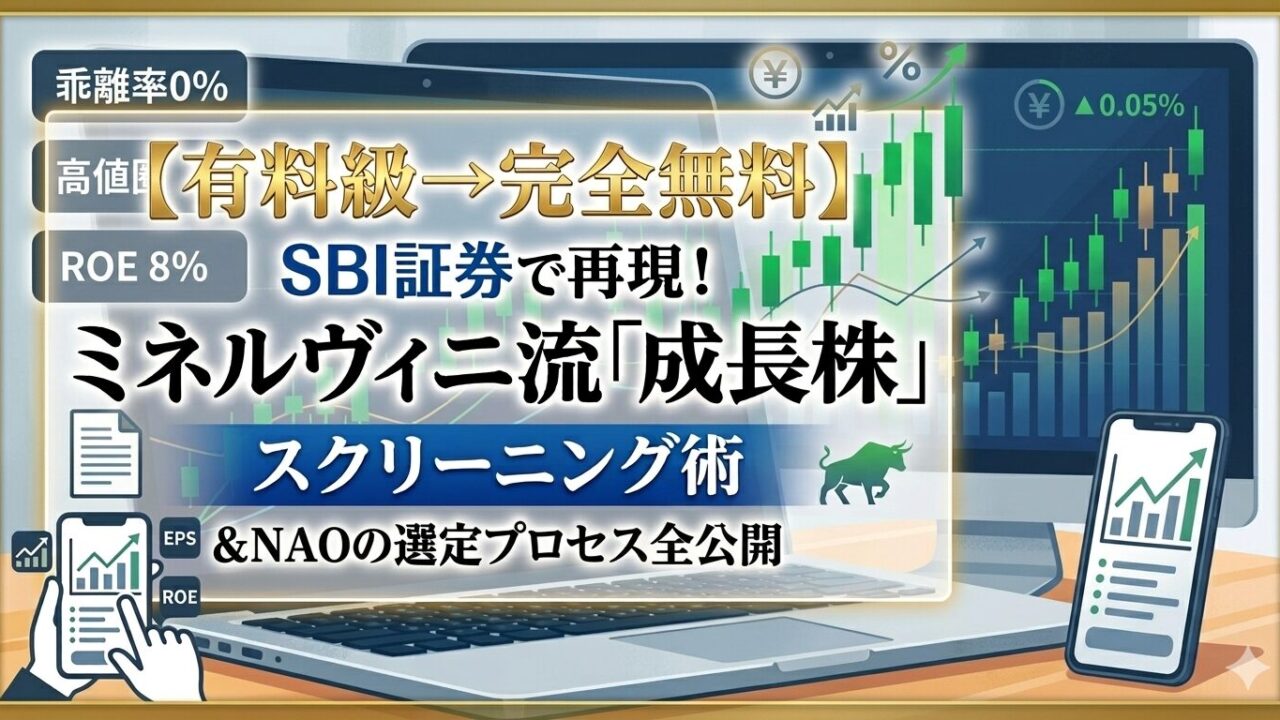 私はマーク・ミネルヴィニの成長株投資をバイブルにしていますが、メインで使っているSBI証券のスクリーナーでは、彼の「トレンド・テンプレート」をそのまま設定することができません。